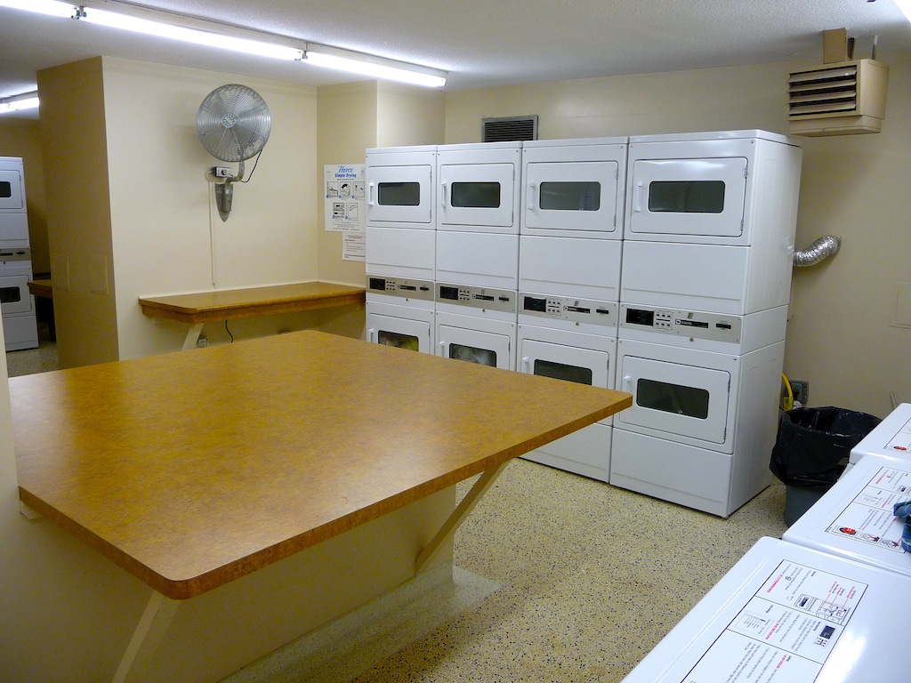 Several of the dryers in the first room (the one you enter with your fob) run for 44 minutes instead of 52 to save on hydro. If you have a particularly heavy drying load, you’ll probably want to use the 52-minute machines in the other two rooms.
